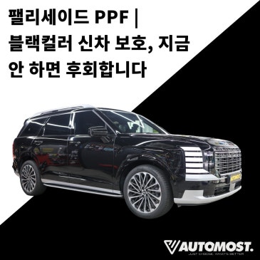 신차 오너들의 가장 큰 고민 (Problem) 신형 팰리세이드 블랙컬러를 출고한 오너분들이 가장 먼저 하는 고민은 바로 신차 도장 보호입니다. 이런 고민을 해결하는 것이 바로 PPF입니다. SUV특성상 차체가 크로 노출면적이 많아, 도장 손상이 더 빠르게 눈에 띄는 경우가 많습니다. 오늘은 오토모스트 본점에서 진행한 팰리세이드 PPF 블랙컬러 신차보호 및 생활기스, 스톤칩을 해결할 수 있는 시공 사례를 통해, 왜 신차 보호에 PPF가 필수인지, 그리고 어떤 차별화된 기술로 완성되는지 자세히 소개합니다. 함께 보실까요? 블랙컬러 차량은 작은 스크래치나 세차 자국(스월마크)까지 선명하게 드러납니다. 한 번의 고속 주행만으로도 본넷…….